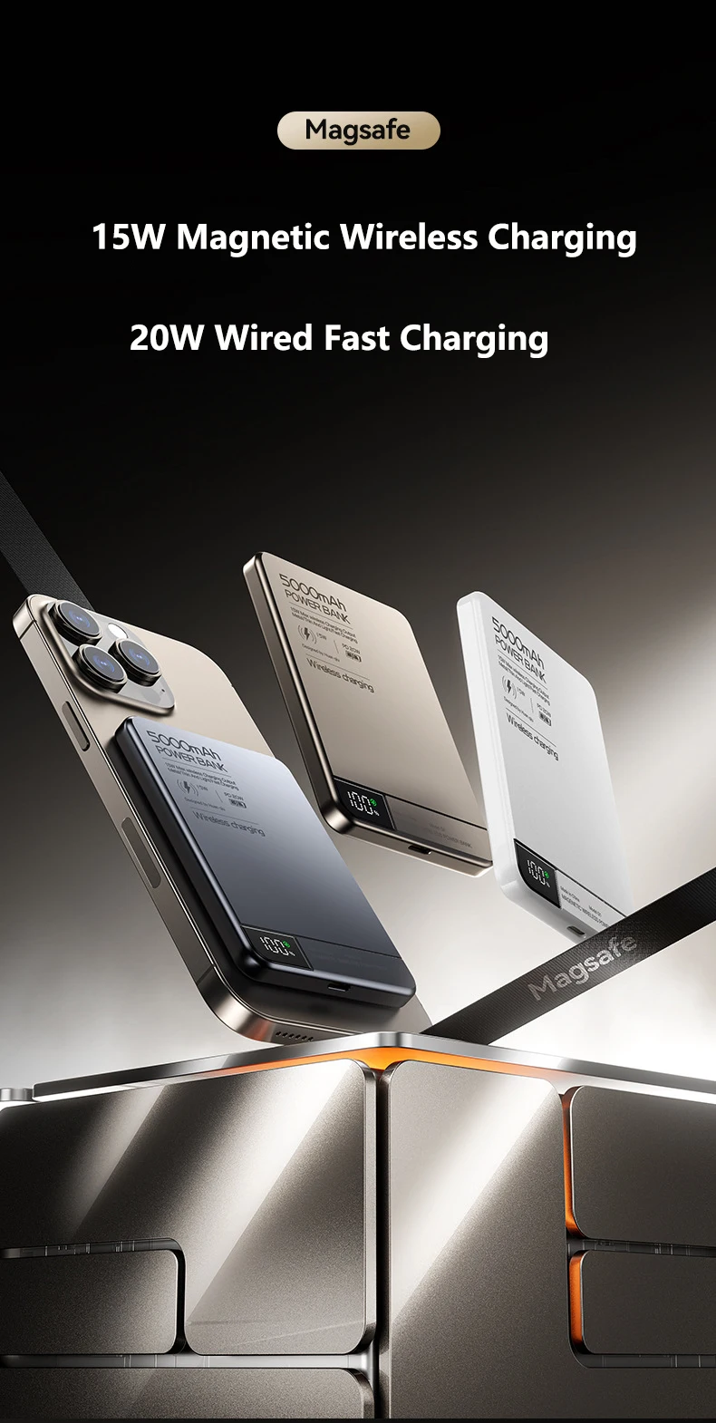 5000mAh/10000mAh Ultra Thin Alloy Magsafe Powerbank Magnetic Power Bank Wireless Fast Charger For iPhone 16 15 14 13 12 11 iWatch Backup Battery